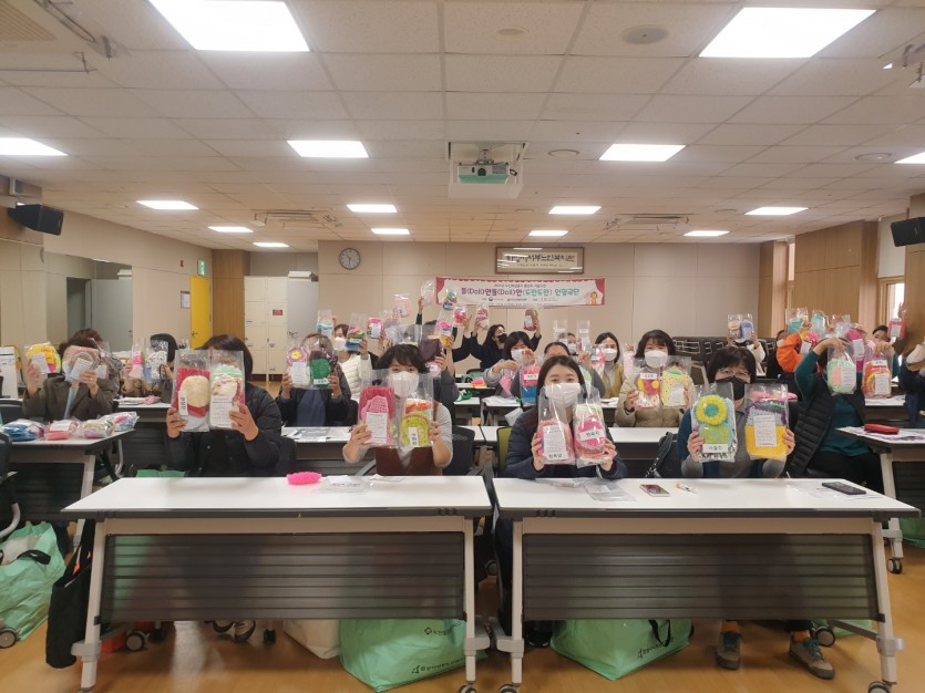 2022년 4월부터 10월까지 6개월간(총 12회기) 진행한 재능활동(수세미, 행주, 목도리)으로 완성된