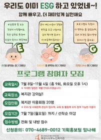 우리도 이미 ESG 하고 있었네!! 함께 배우고, 더 재미있게 실천하는 ESG 참여자 모집