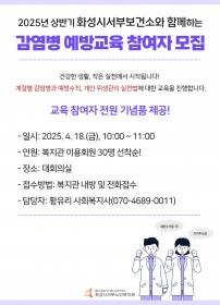 2025년 상반기 화성시서부보건소와 함께하는 감염병 예방교육 참여자 모집