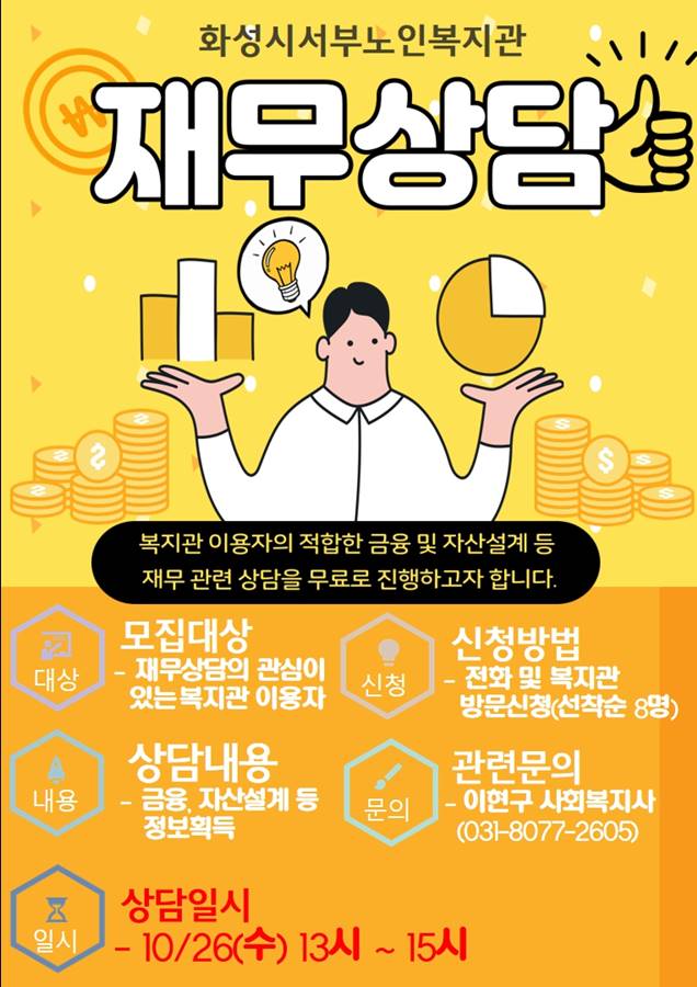 [화성시서부노안복지관] 상담사업 '재무상담' 관련하여 아래와 같이 안내 드립니다!